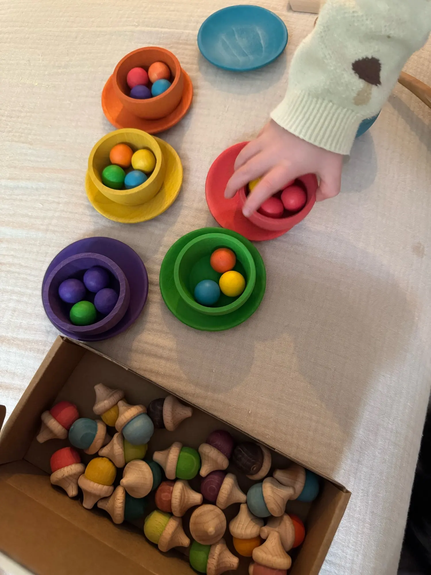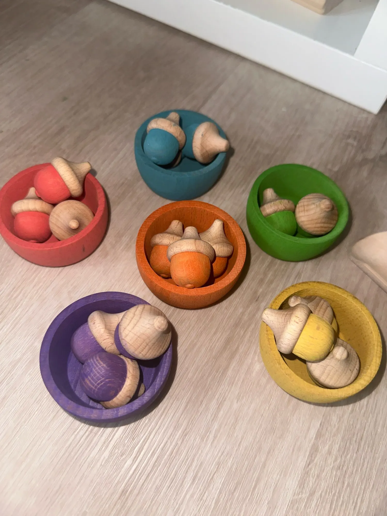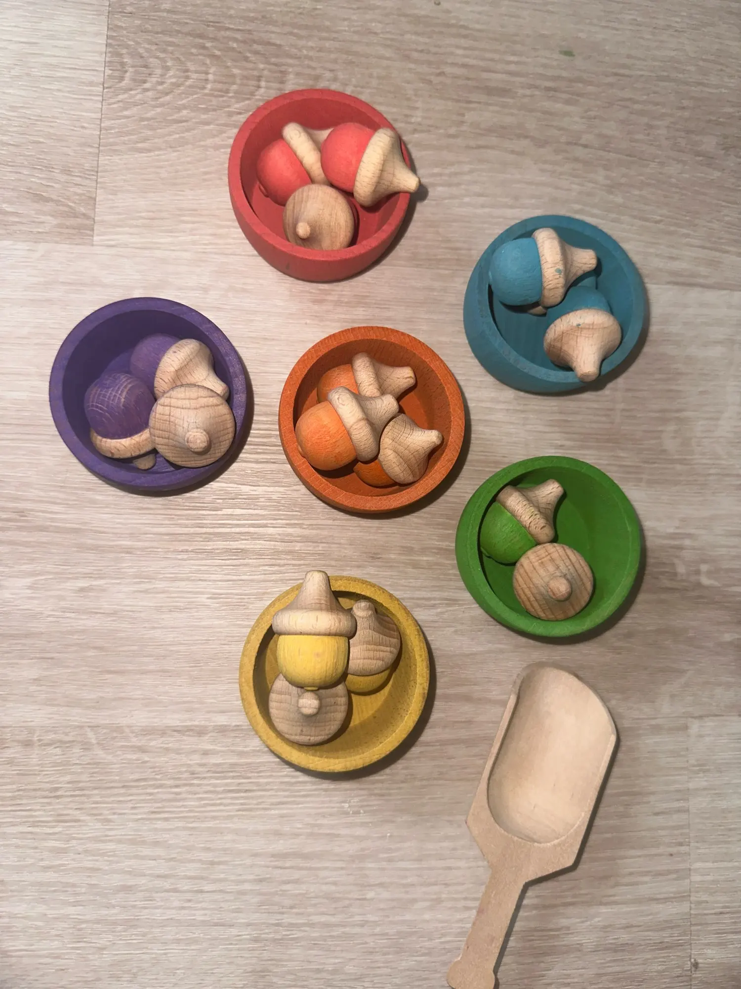 Montessori Rainbow and Pastel Beech Wood Acorns