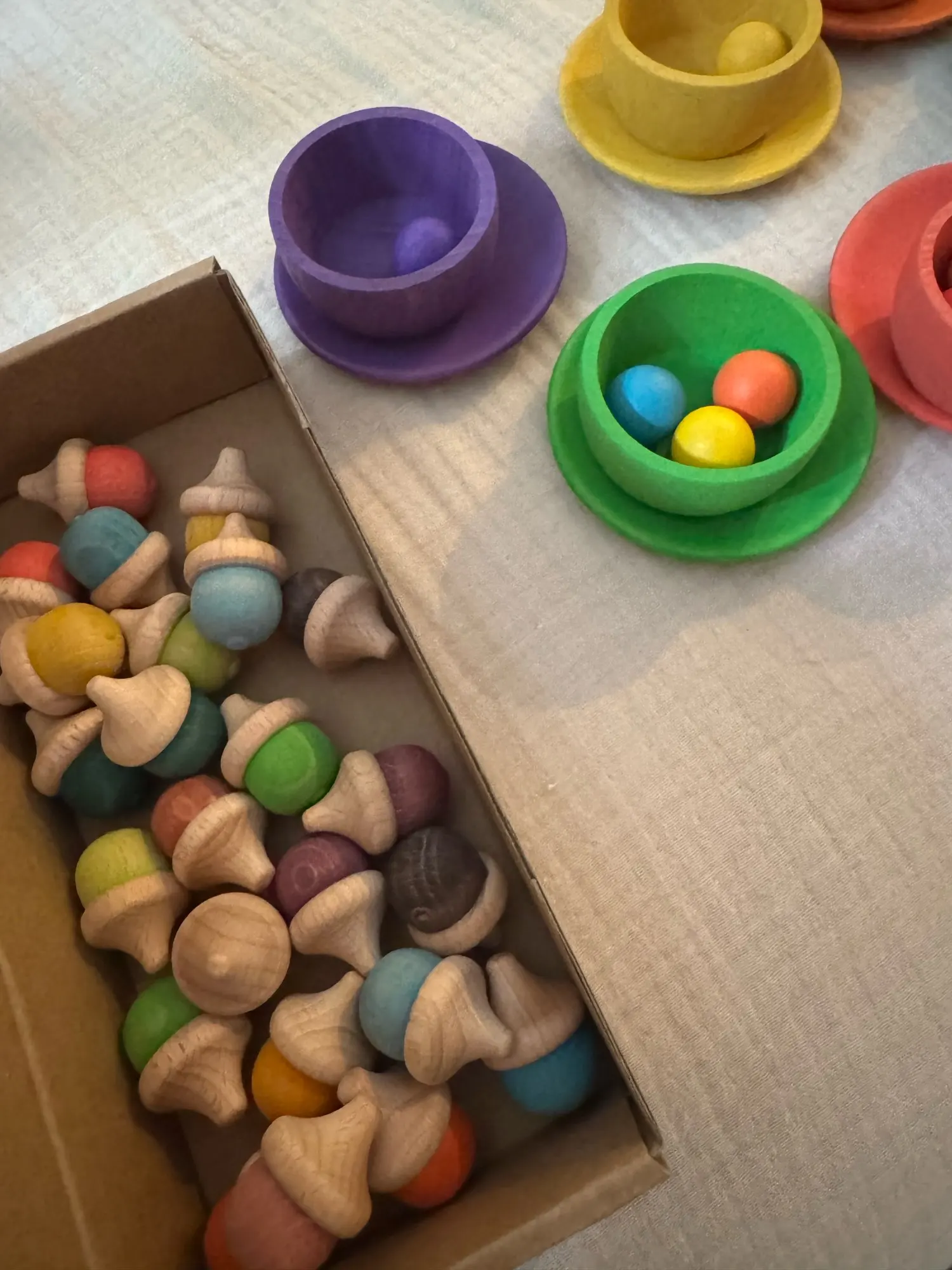 Enhance your child’s toy collection today by adding in the Montessori Rainbow and Pastel Beech Wooden Acorns. They’ll embark on a journey of finding and learning about the world around them!