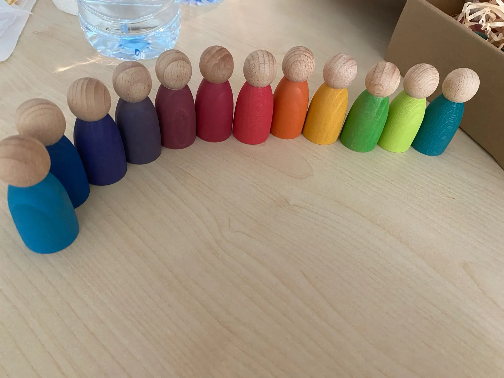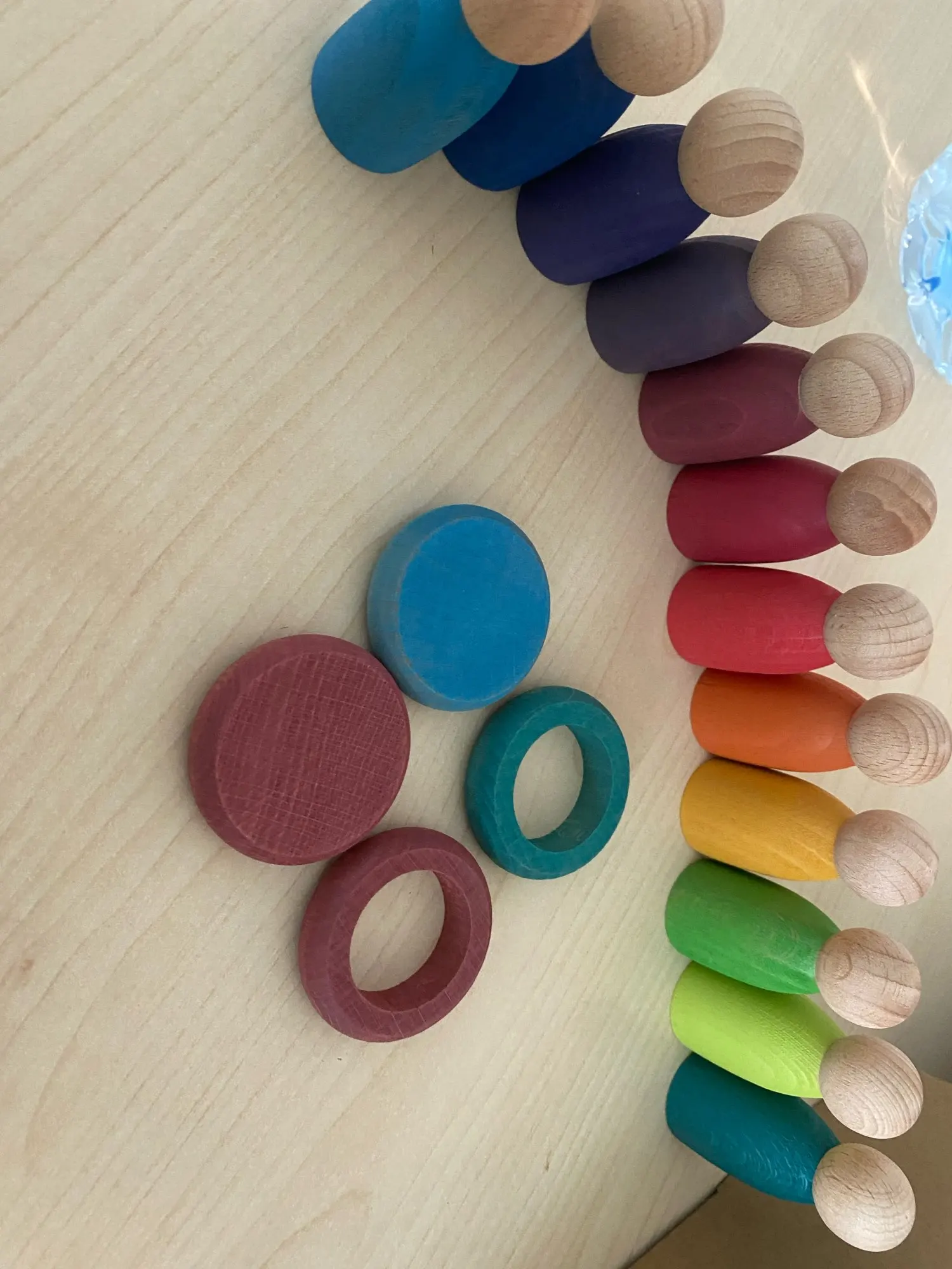 Montessori Rainbow Stacking Coins and Rings with Peg Dolls