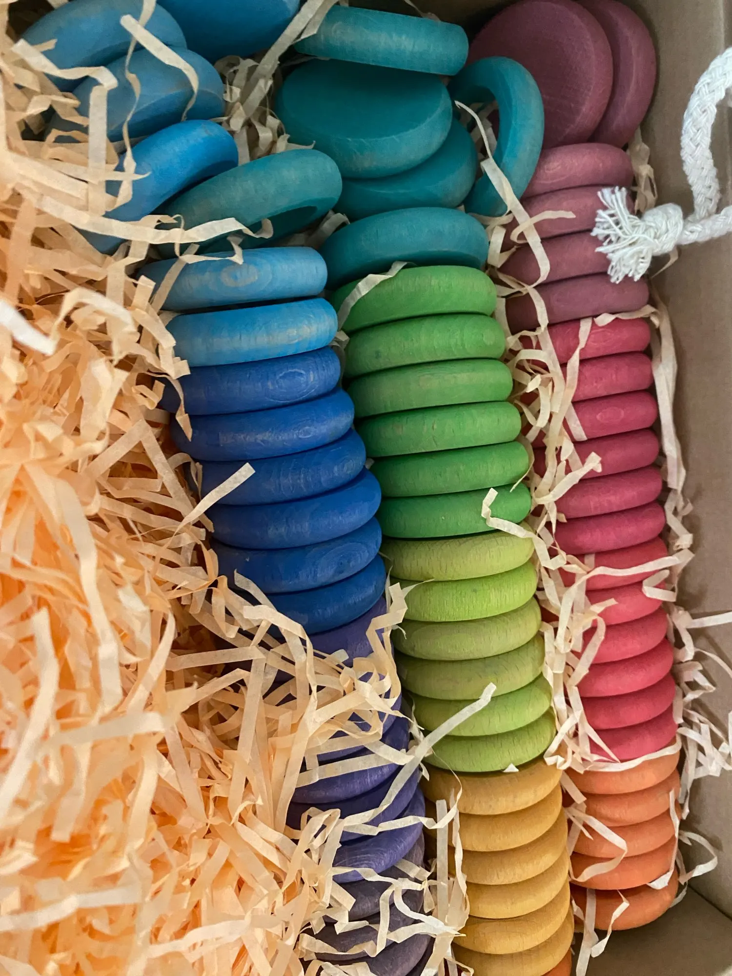 Develop fine motor skills and explore imaginative play with our Rainbow Stacking Coins and Rings. This Montessori-inspired set promotes child-led learning while providing fun and engaging activities for children 3 years and older.