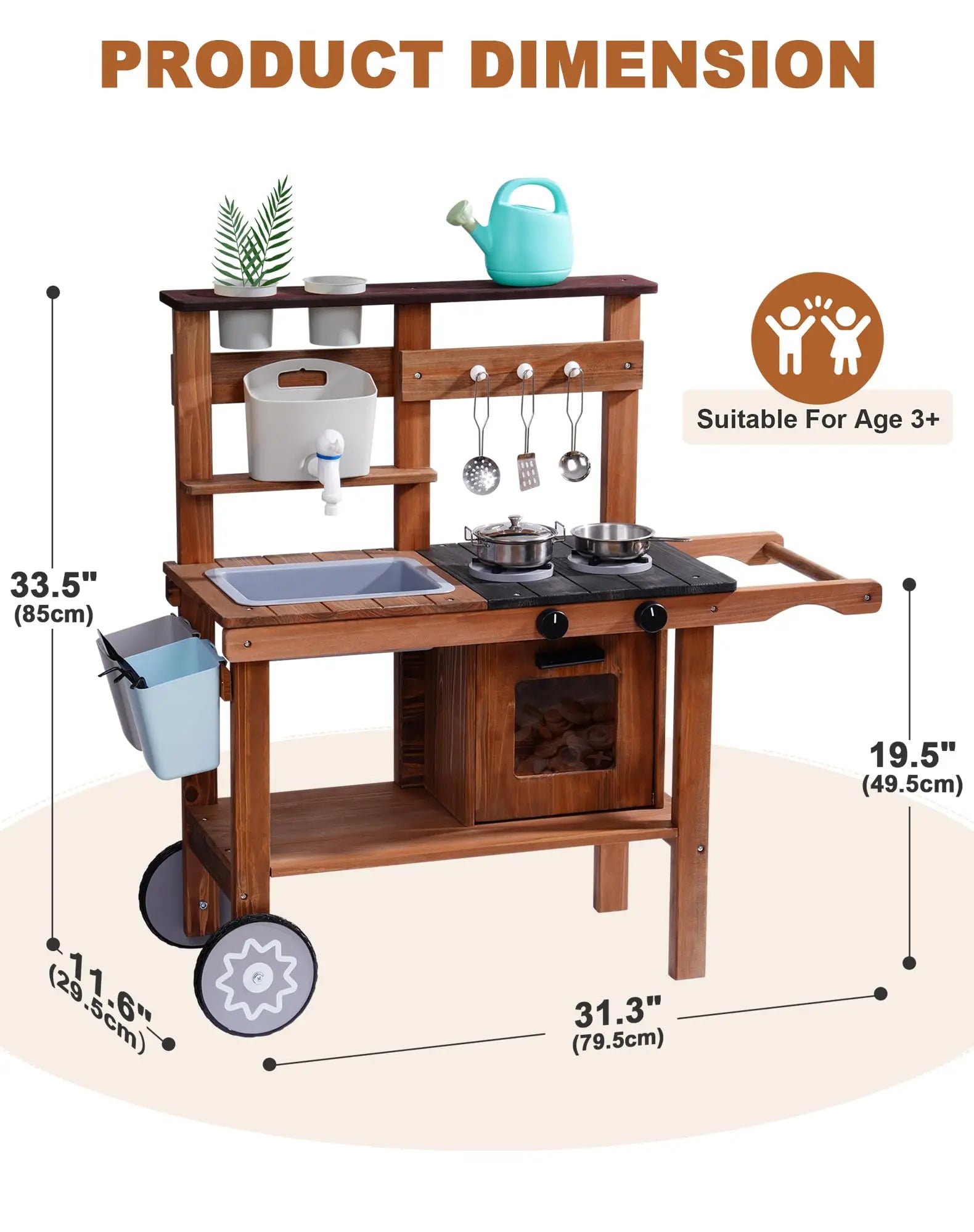 Premium wooden play kitchens by Robud featuring realistic details including stovetop, oven, microwave, sink, and coffee corner. Our exclusive partnership brings you these high-quality play kitchen sets perfect for inspiring imaginative cooking and role-play!