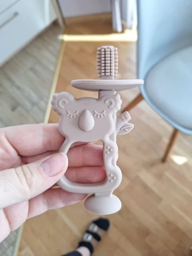 Haga que la dentición y el cepillado sean muy sencillos con nuestro cepillo de dientes/mordedor de silicona para bebés con un bonito diseño de koala. Fabricado con silicona apta para uso alimentario y sin BPA, este dúo de cepillo de dientes y mordedor cumple una doble función: calma las encías doloridas e inculca buenos hábitos de cuidado bucal. Las cerdas de silicona suaves y flexibles proporcionan un masaje relajante para las encías de su hijo, mientras que la divertida forma del animal lo mantiene entretenido, lo que garantiza que el cepillado sea una experiencia agradable y útil.