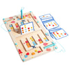 Wooden game board with colorful cards and text indicating game settlement and winner determination. Shape Maze – Magnetic Sorting Board | Oliver Montessori Toys