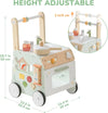 Help your little one take their first steps with confidence using this multifunctional wooden baby walker featuring a charming kitchen design. The interactive activity panel includes engaging elements like a clock, shape matching, and salad sliders to stimulate color perception and cognitive development while learning to walk.