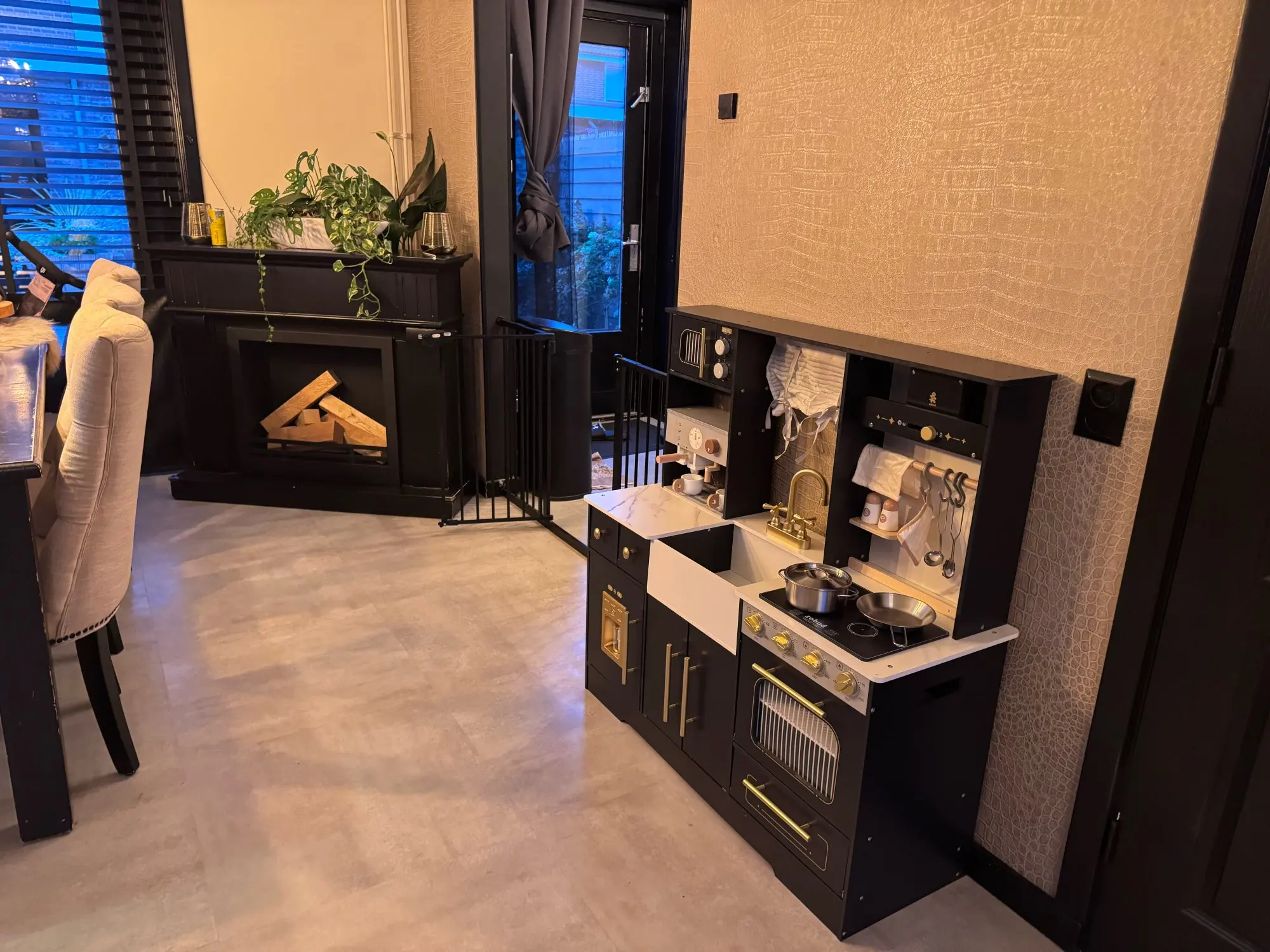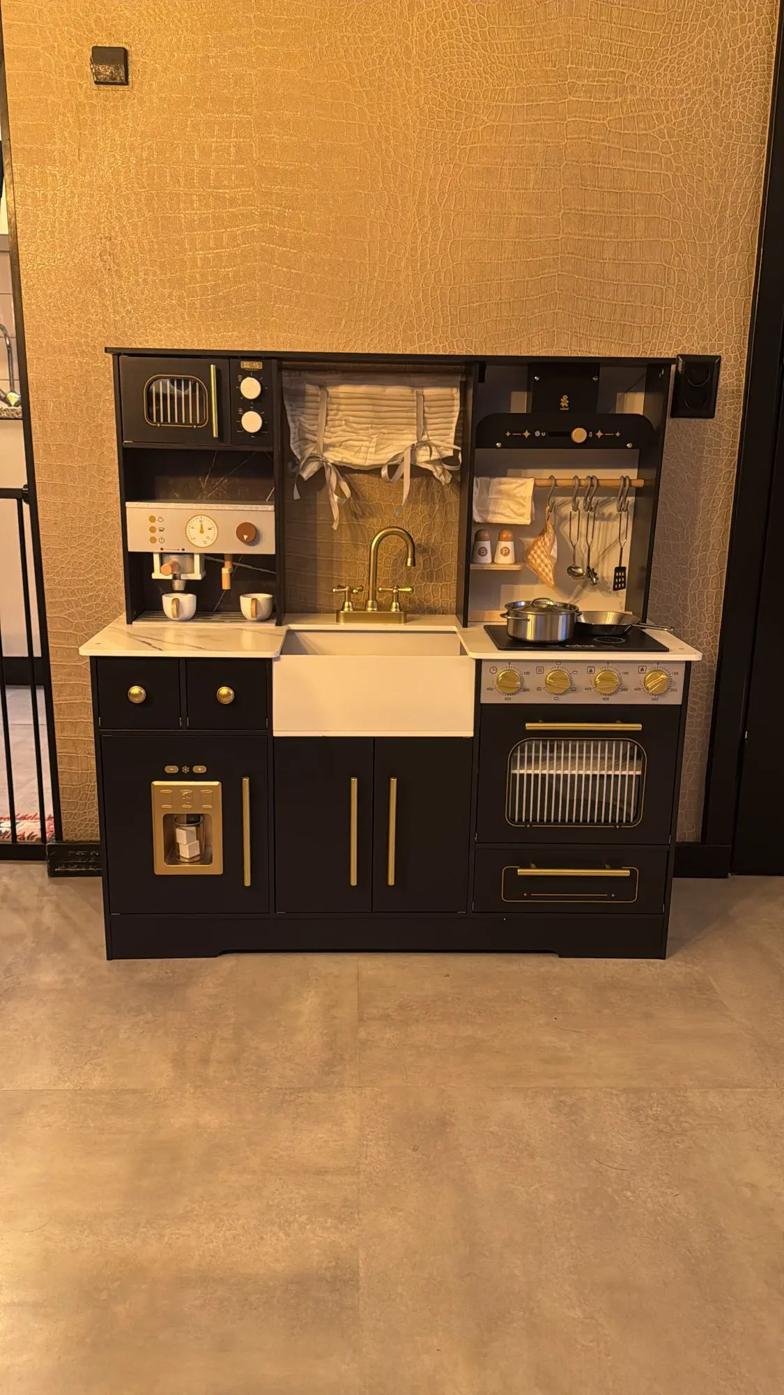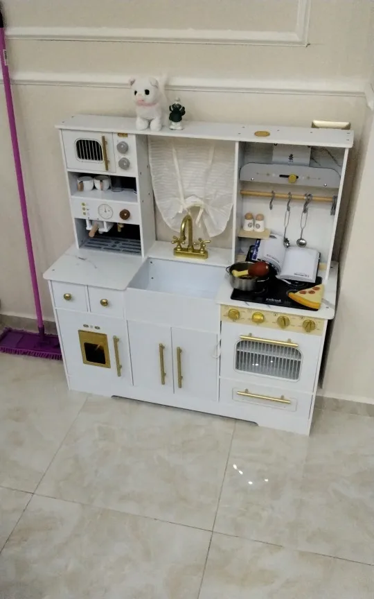 Transform playtime with this premium wooden play kitchen featuring a complete set of realistic accessories. Designed for children ages 3-12, this life-size kitchen set includes a working sink, ice maker, dishwasher, microwave, and cookware accessories for authentic culinary adventures.