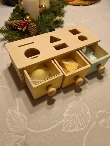 Crafted from natural wood with smooth, child-safe finishes. The sturdy construction withstands enthusiastic exploration while the simple design keeps the focus on the learning experience. A classic Montessori material that supports your baby's cognitive development beautifully!