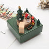 Decorative Christmas-themed music box with miniature figures on a white surface.